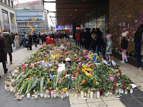 En vecka efter terrordådet på Drottninggatan. Vi tog med barnen dit. De såg förundrat på.
